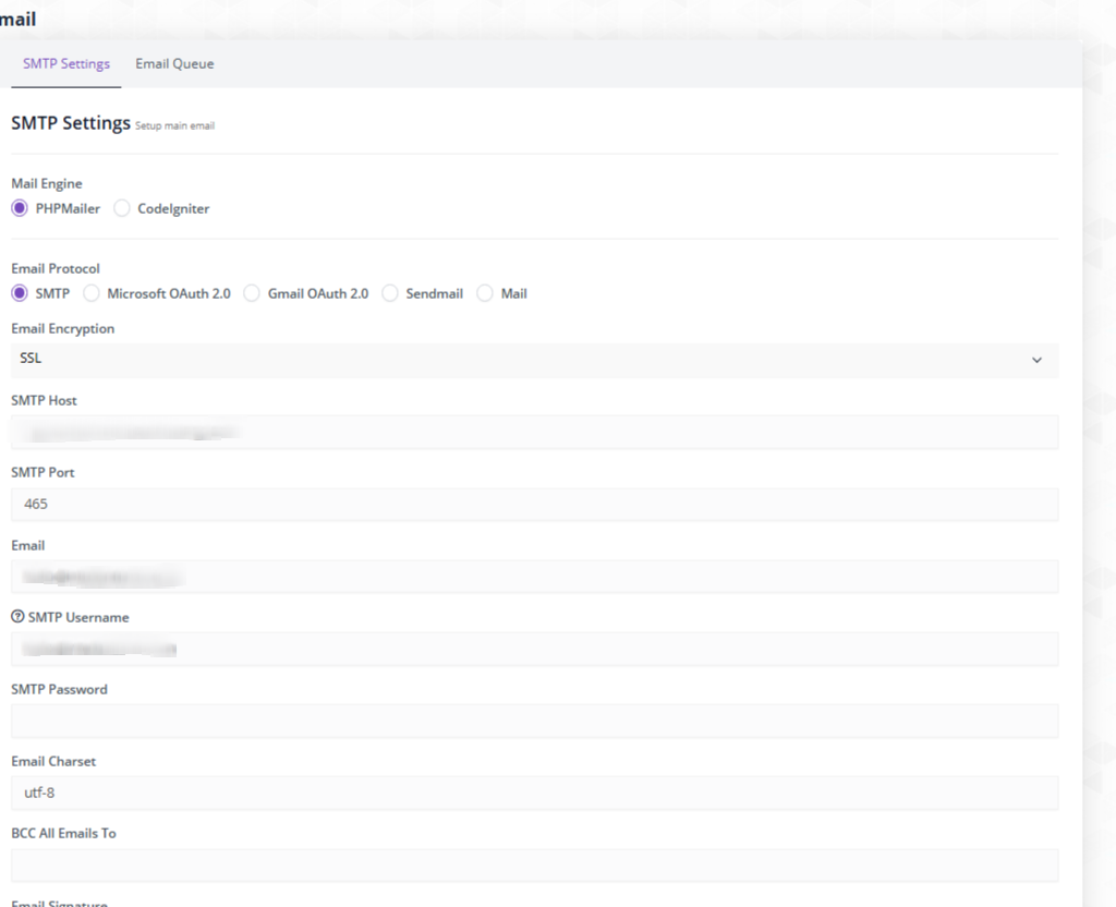 Please note that the above is from the SMTP tab, so if you select Microsoft Gmail or else, the little description text will be different.